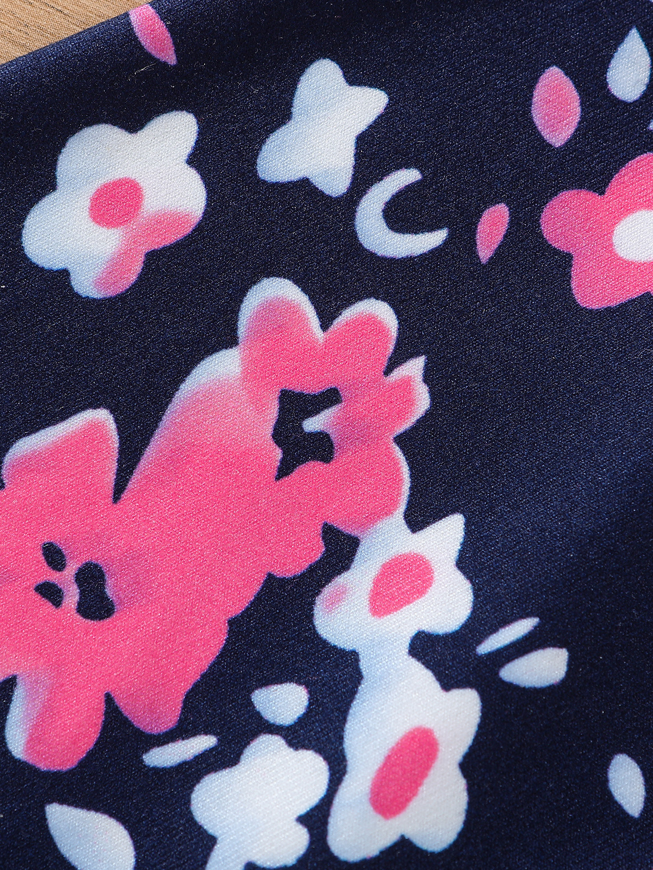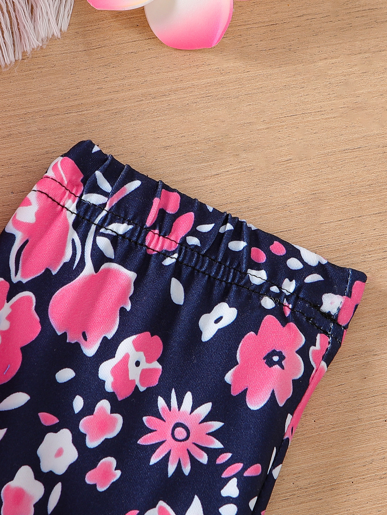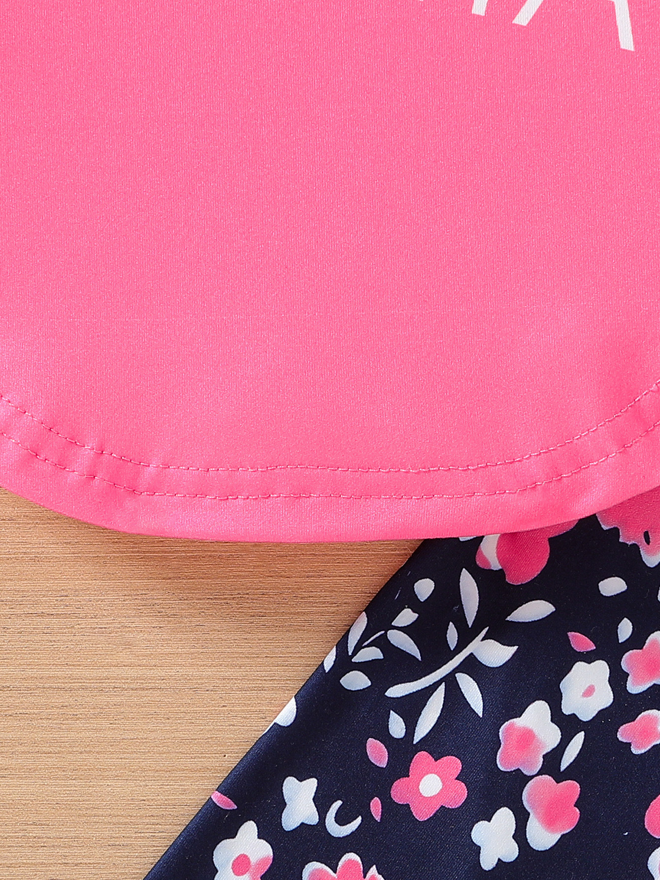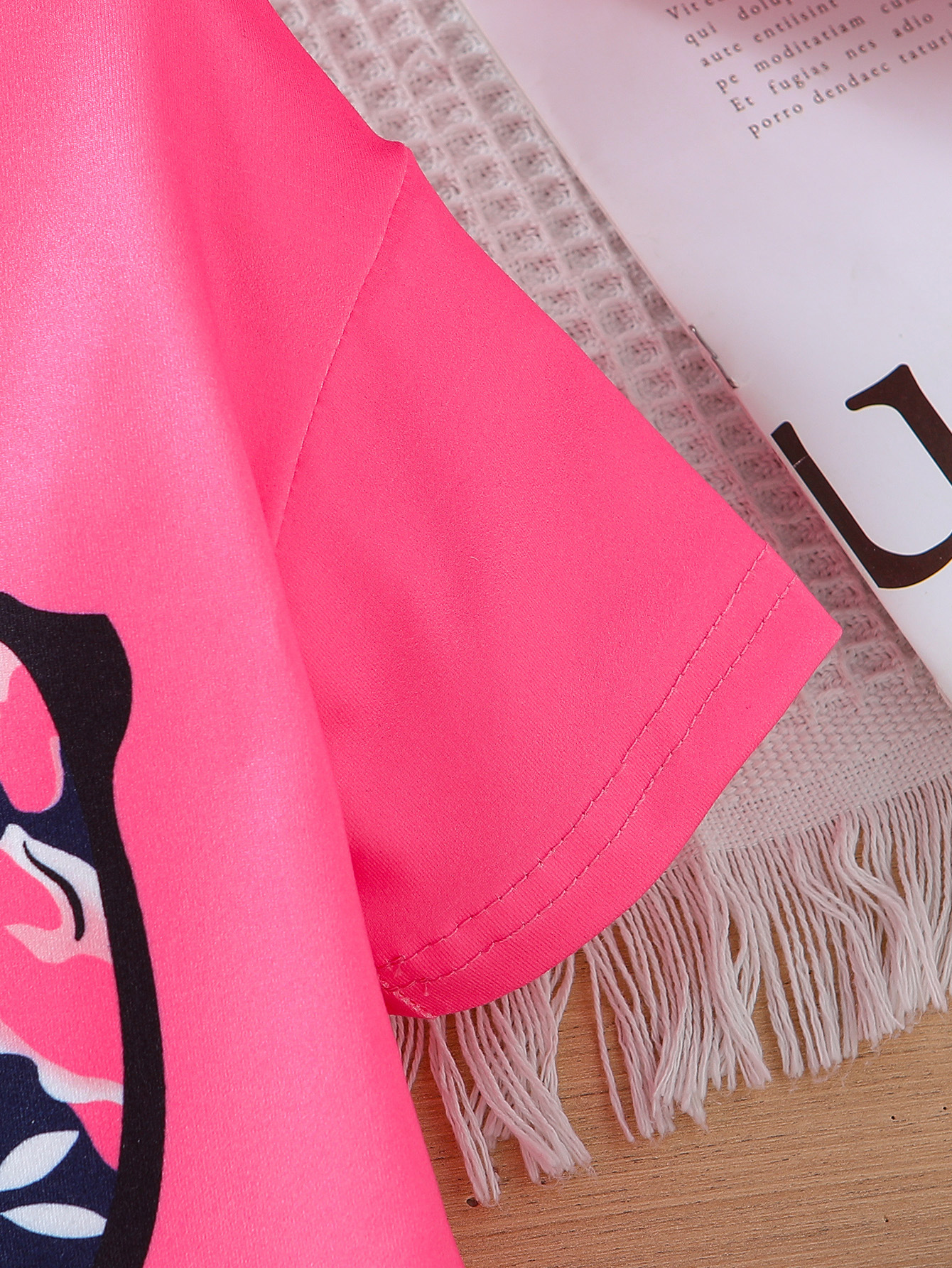 Girls Heat Transfer Patch Short Sleeve Round Neck Top Casual Pants Suit