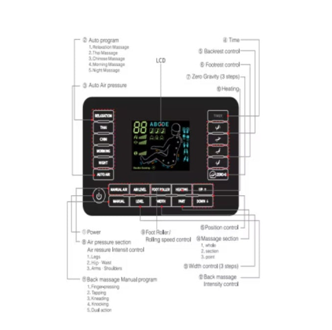 - 【AIRBAG MASSAGE】Equipped with full body airbags covering shoulders, arms, hip-waist, and legs. Dedicated airbag massage programs sync with automatic ones for a comprehensive body massage.