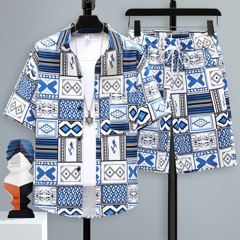Herren Kurzarmanzug Jugend Student Freizeit Sport Coole Shorts Zweiteiliges Set