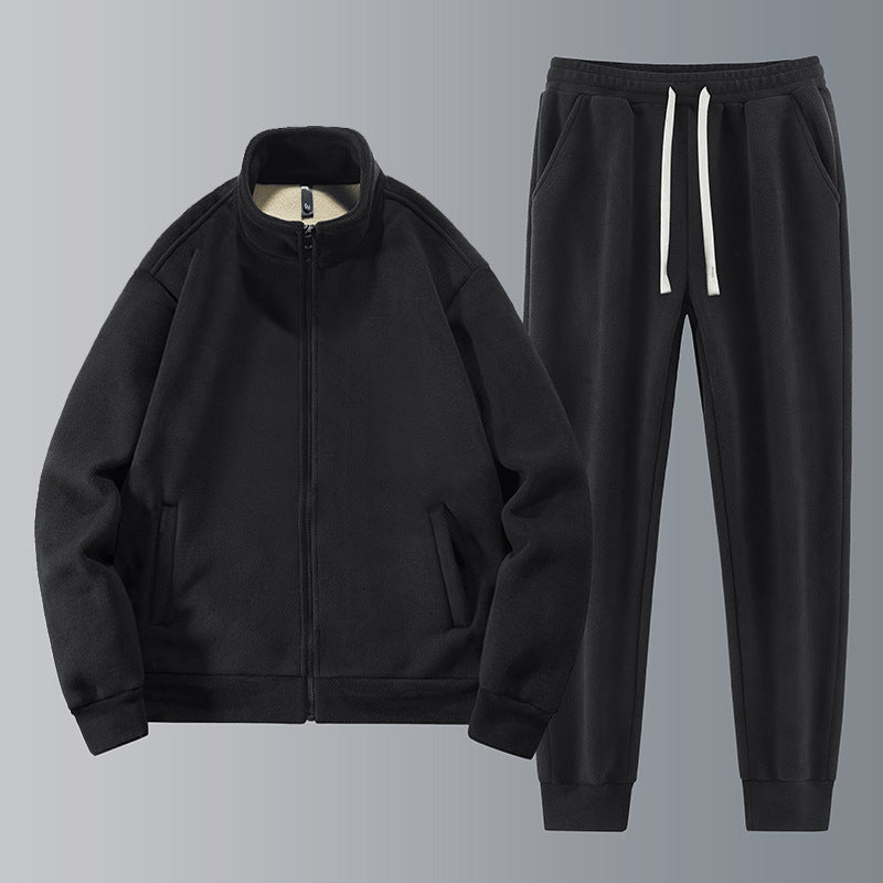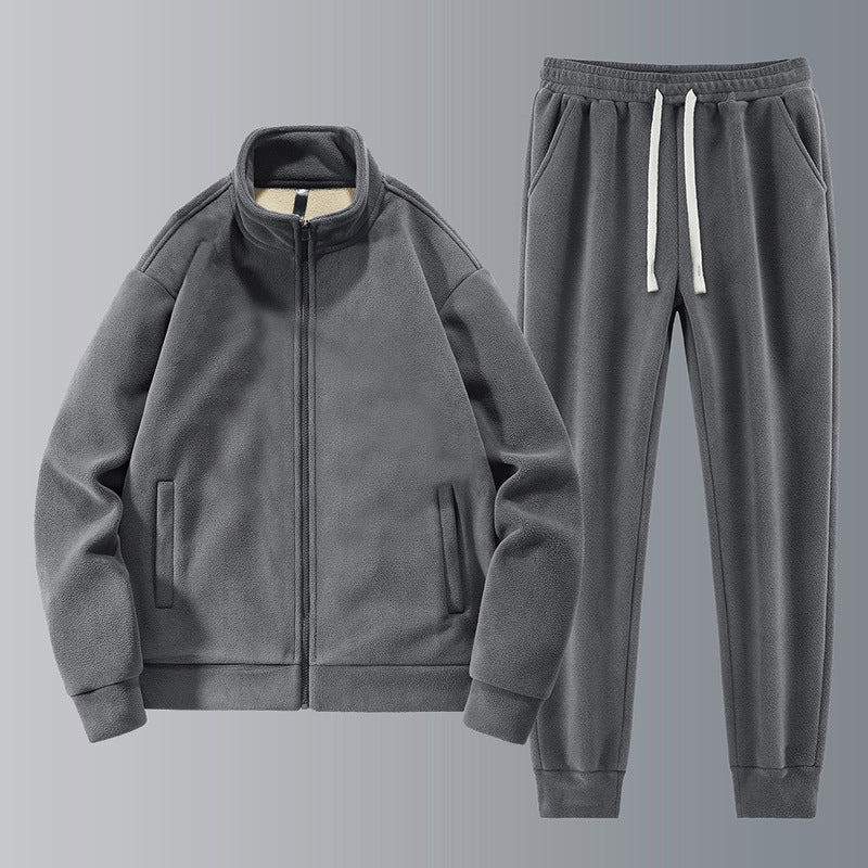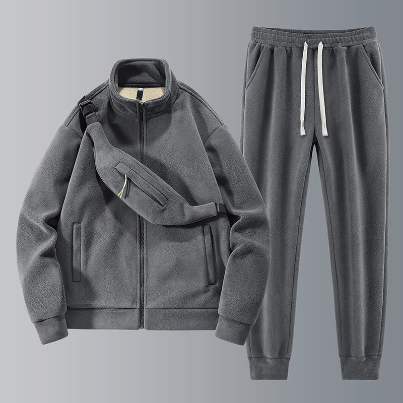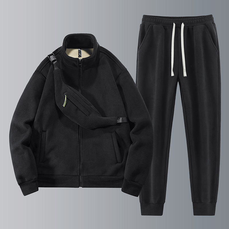 Polyester Men's Polar Fleece Thickened Warm Suit Loose Lapel Comfortable Coat Fashion Casual Complete Set