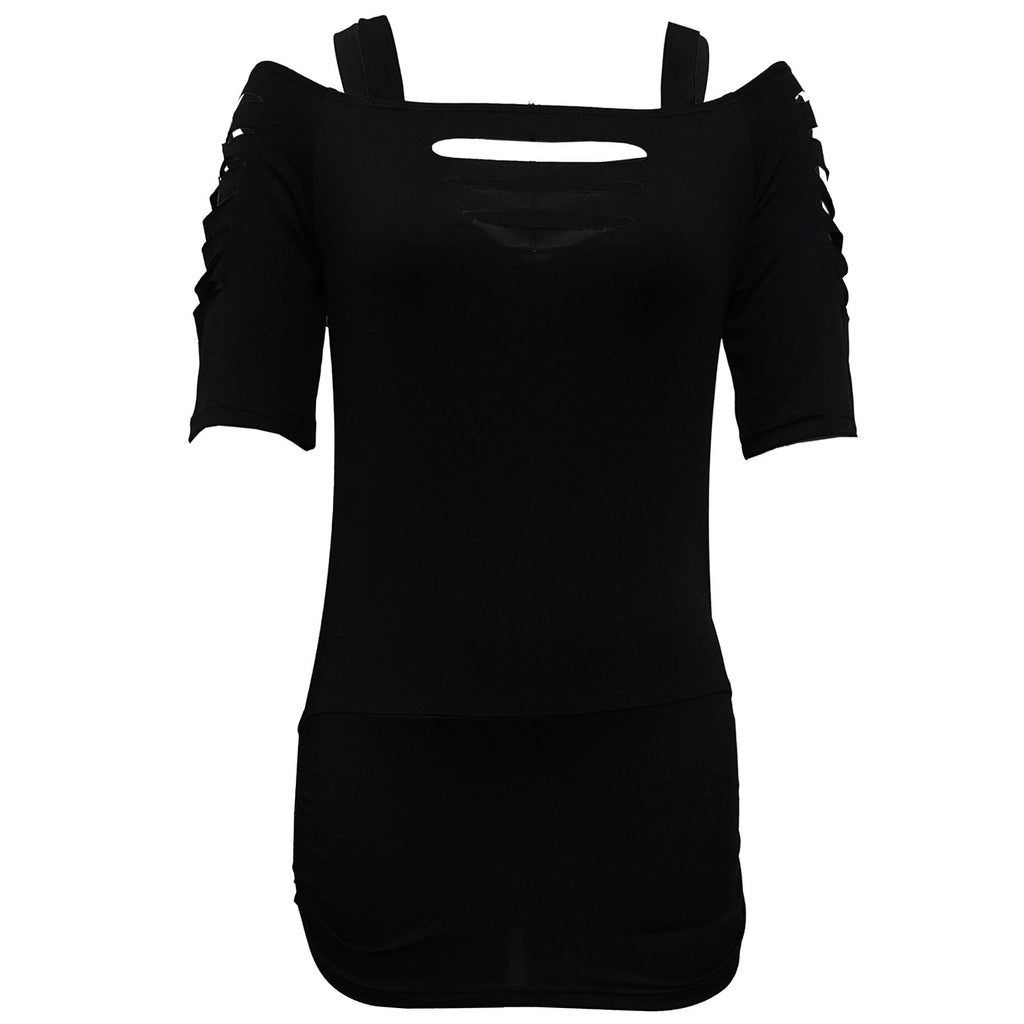 Ladies' Solid Color Lace Up Sleeve Shirt With Hollowed Out Square Collar Casual Shirt, Summer Rock T-shirt Top