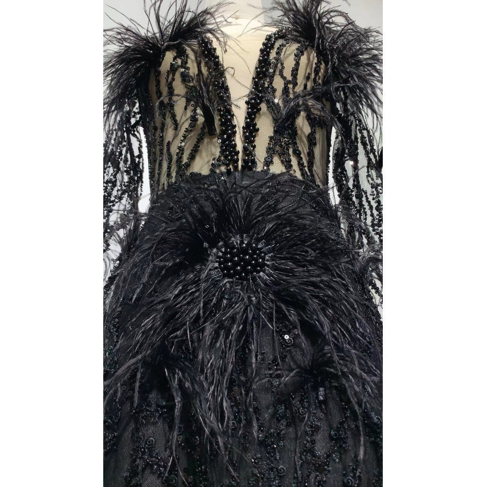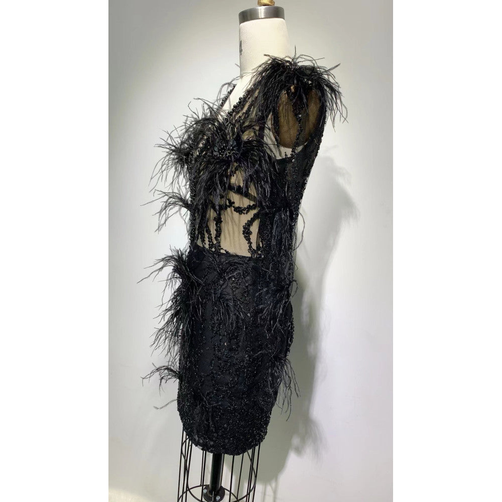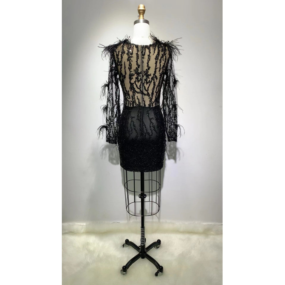 Mesh Long-sleeved Sequin Feather Casual Dress