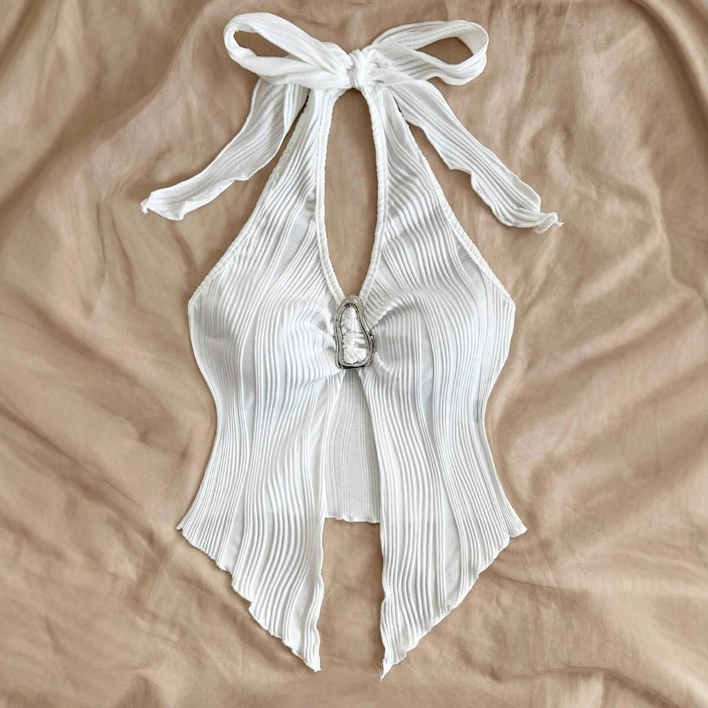 Casual Lace Up Metal Buckle Fit Asymmetric Hem Vest