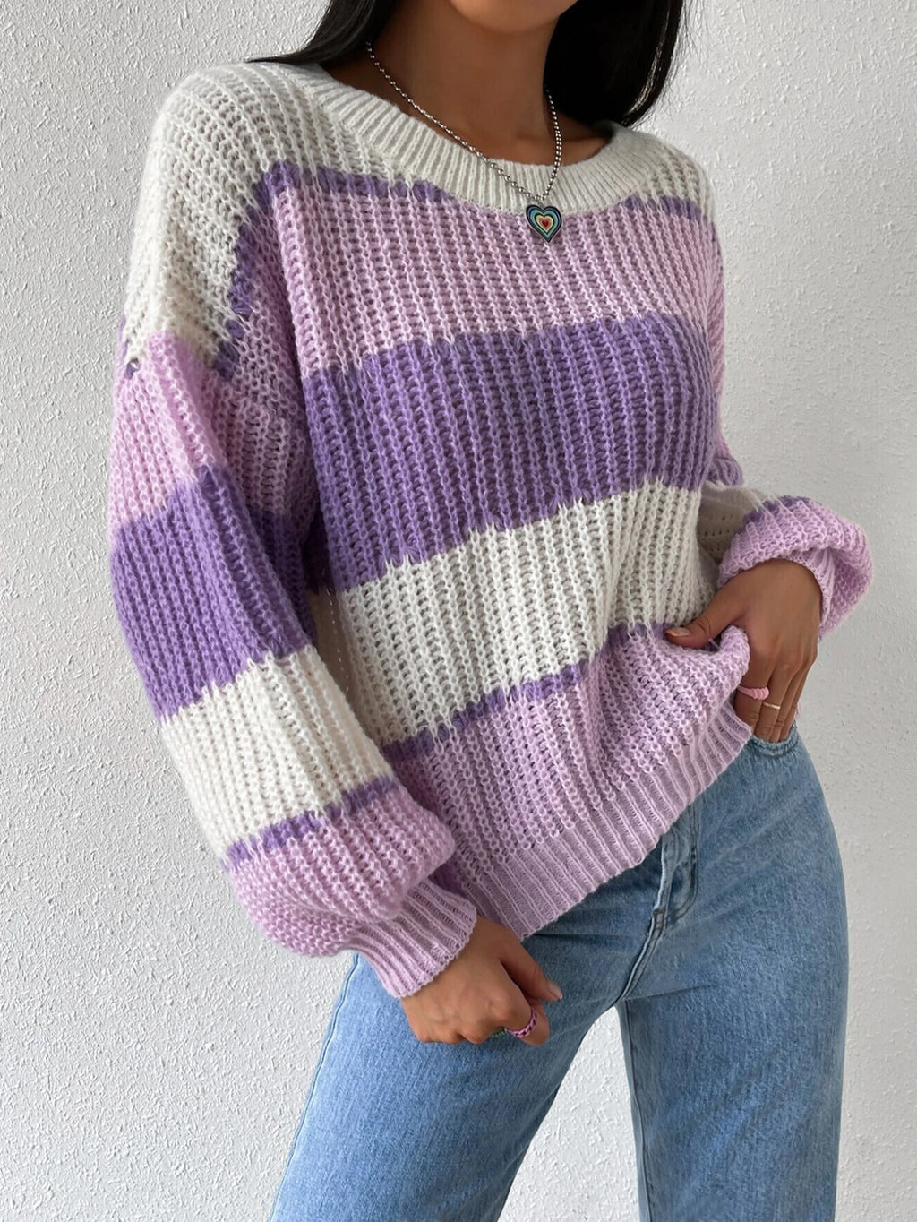 Autumn And Winter Long Sleeve Pullover Contrast Color Casual